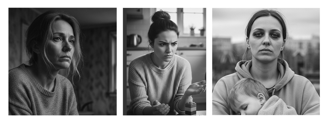 怖くて暗い顔をした⺟親たちと